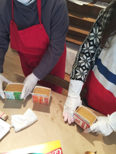 最初のチームはもう型入れして→底をとんとんしております。あちゃー!です。